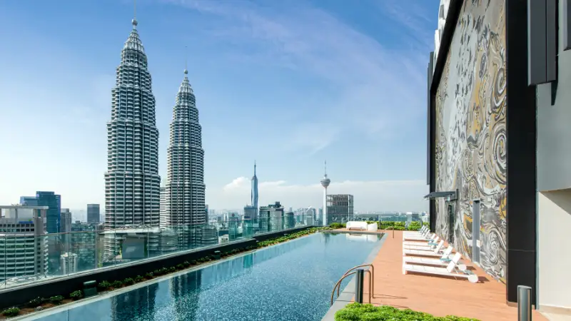 Er zijn heel wat hotels met infinity pool in Kuala Lumpur, niet zo vreemd met de hoge temperaturen en luchtvochtigheid in de Maleisische hoofdstad. Al deze hotels bieden een zwembad op grote hoogte en met een spectaculair uitzicht, maar niet allemaal met een uitzicht op de Petronas Towers.
